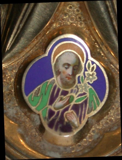 Le calice est l'oeuvre des orfèvres parisiens Jamain et Chevron, actifs entre 1865 et 1879.