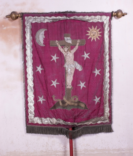 La bannière de procession est probablement celle achetée en 1806 par la fabrique.