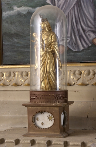 Statuette couronnée sous globe : Vierge à l'Enfant, dite Notre-Dame de Bonne Délivrance,