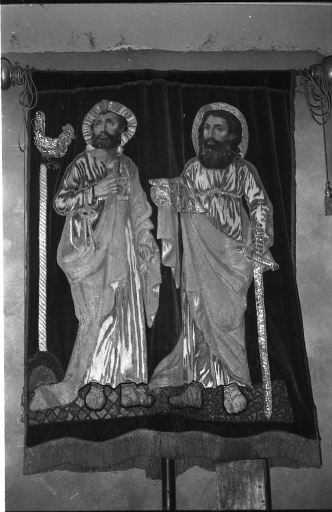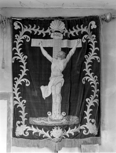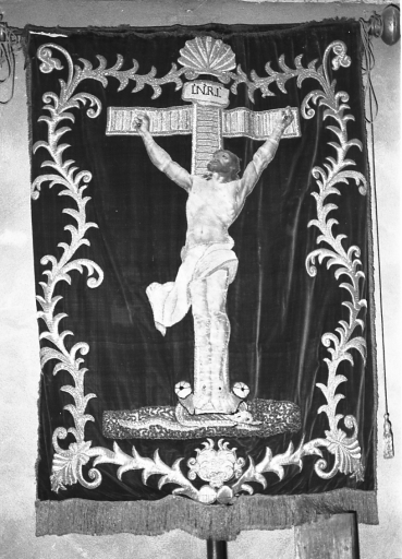 Bannière de procession paroissiale : Saint Pierre et saint Paul, Christ en croix (Bazouges-la-Pérouse),