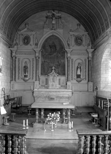 L'église abrite des statues de saint Roch et saint Sébastien qui datent du 17e siècle. Le vitrail intitulé "Couronnement de la Vierge" date de 1934 : il s'agit, dit-on, d'une donation des meuniers de Quincampoix. La maîtresse vitre portait au 16e et au 17e siècles les armes des seigneurs de Rimou. La chapelle des seigneurs de Rimou renfermait leur enfeu au 16e et au 17e siècles. Les seigneurs du Boisbaudry possédaient aussi un enfeu dans l'église.