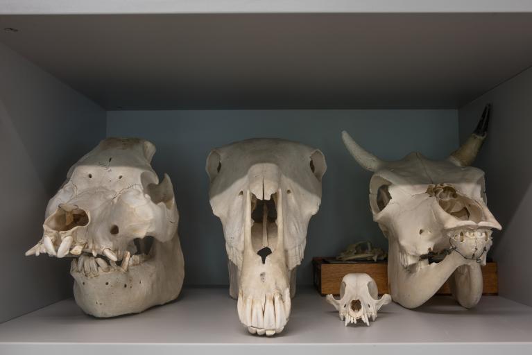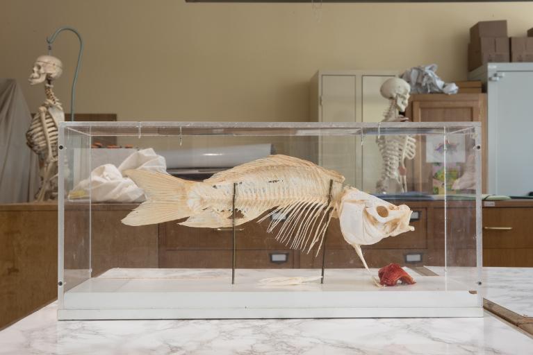 La collection de zoologie dispose d’objets relativement récents et utilisés dans l’étude de l’anatomie comparée. Deux animaux naturalisés (une hermine et une effraie des clochers), quelques crânes (bœuf, chat, cheval, gorille, lapins, porcin), plusieurs squelettes d’animaux complets sur socle et protégés par un couvercle (carpe, chauve-souris, grenouille, lapins, lézard, pigeon, rat, serpent), ainsi qu’un squelette humain composent cette collection. La plupart des squelettes proviennent du même fournisseur, Jeulin, ce qui permet d'émettre l'hypothèse qu’ils auraient été acquis la même année.