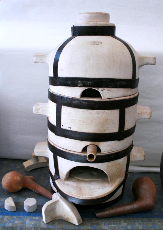 Deux alambics pour la production d’eau distillée en continu, des allonges droites et courbes, un appareil d’analyse élémentaire et tube à boules de Liebig, des appareils intermittents de Kipp, des ballons, un chalumeau sur pied, une conserve à cordeline et à couvercle à bouton, des cornues en grès, des cornues en verre, une cornue tubulée en terre, des creusets ronds à bec en terre réfractaire, un dessicateur de Scheibler à couvercle rodé à bouton, des flacons bouchés émeri, un fourneau à réverbère démontable (signé Poulenc Frères), un fourneau à tubes, une lampe à acétylène, du matériel porcelaine (capsules, nacelles à anneau, main, cuve rectangulaire), des matras d’essayeur, un serpentin en verre pour allonge, un serpentin avec réfrigérant bitubulé, une soufflerie hydraulique, des touries en verre, des vases à graines et un œuf électrique de Berthelot pour la synthèse de l’acétylène.