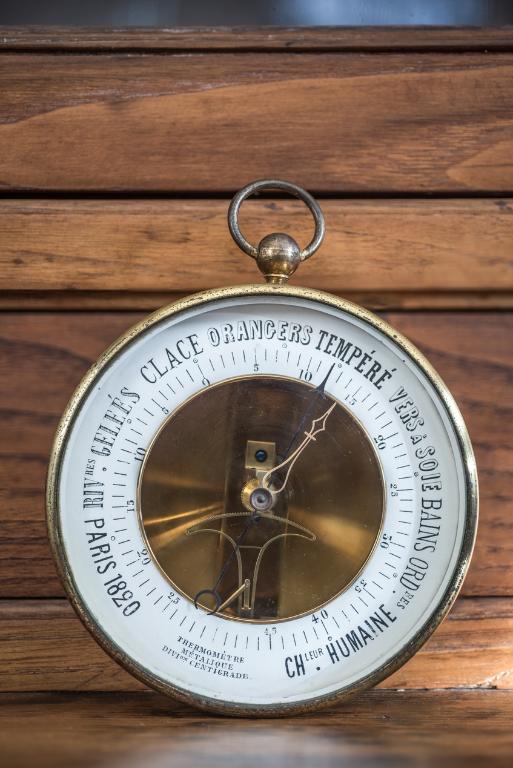 Des alambics (dont un signé Dujardin-Salleron), des anneaux de s’Gravesande, un appareil d’Ingenhousz, un appareil de Berthelot, un appareil de Dulong et Petit (signé Alvergniat, 19e siècle), un appareil de Gay-Lussac, un appareil de Hope, un appareil de Meyer, un appareil pour déterminer le degré cent du thermomètre, un appareil pour déterminer le degré zéro du thermomètre, un aspirateur de Regnault, des ballons de l’appareil de Dumas, un briquet à air comprimé, des calorimètres à eau, un calorimètre à glace de Bunsen, un calorimètre à glace de Laplace et Lavoisier (18e siècle), une chaudière à vapeurs à bouilleurs, une chaudière de Boutigny, un cryophore de Wollaston, un cube de Leslie, un hygromètre de Saussure (signé Pixii, 19e siècle), des miroirs conjugués, un pendule à gril de Leroy, une pile thermoélectrique de Noé, une pompe de Carré pour la congélation de l’eau, un pyromètre à levier, un radiomètre de Crookes et des thermomètres (dont un thermomètre à minima de Walferdin signé de la maison Binda et un thermomètre métallique de Breguet).