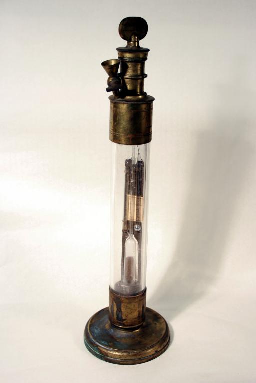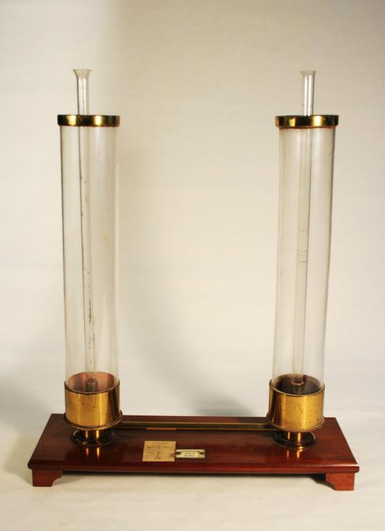 Un appareil de Briet, des ballons pour déterminer la masse et la masse volumique d’un gaz, un baromètre à colonne entière, un baromètre de Fortin, des baromètres enregistreurs (dont un signé J. Richard et un signé Anc. Etc. L. Maxant), un baromètre métallique de Vidie, un baromètre tronqué, des baroscopes, des cloches à vide, une cuvette profonde à mercure, une fontaine de compression, des hémisphères de Magdebourg, une machine pneumatique d’Otto de Guericke, deux manomètres de Bourdon (signés Radiguet & Massiot), un manomètre de Regnault (signé Golaz et Fils), une trompe à eau aspirante et soufflante, un tube de Mariotte et des tubes barométriques.