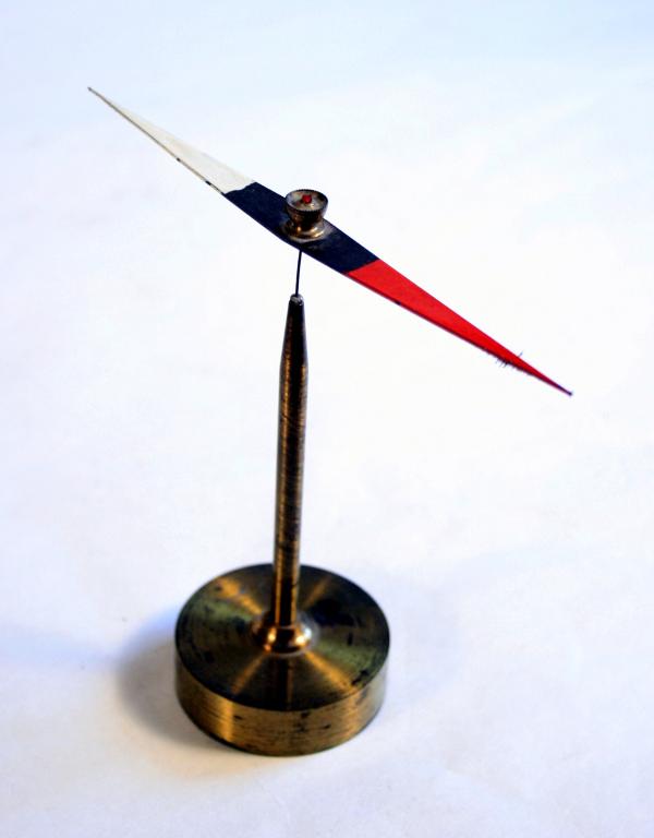 Une aiguille aimantée sur pivot, un compas de marine (dit de l’abbé Nollet signé Le Maire le Fils, 1744) et un magnétomètre de Chassagny (signé Radiguet & Massiot).