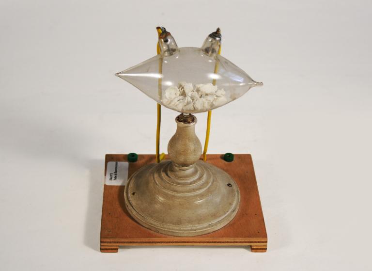 Un appareil pour arc électrique, une balance de Coulomb, deux batteries électriques, une bouteille à carillon électrique, des bouteilles de Franklin à armatures, une bouteille de Leyde, des bouteilles électrométriques de Lane, un carreau fulminant, des carreaux magiques et leur support, un condensateur d’Aepinus, un condensateur plan à lames d’étain, un cylindre isolé d’Aepinus, un électromètre à quadrants de Mascart, des électrophores perpétuels de Volta, un électroscope à feuilles d’or, un excitateur à manches de verre, des hémisphères de Cavendish avec sphère sur pied pour expérience de Biot, un isolateur Mascart, une jarre électrique, une jauge pour eudiomètre de Volta, deux machines de Wimshurst (dont une signée Ducretet & Lejeune, 19e siècle, et une signée Bonetti), un perce-carte (incomplet), un pistolet de Volta, une sphère creuse de Coulomb, une sphère isolée pour l’influence électrique, une tabouret isolant de Mascart, un thermomètre électrique de Riess (incomplet), un tourniquet électrique, des tubes étincelants et un œuf électrique.