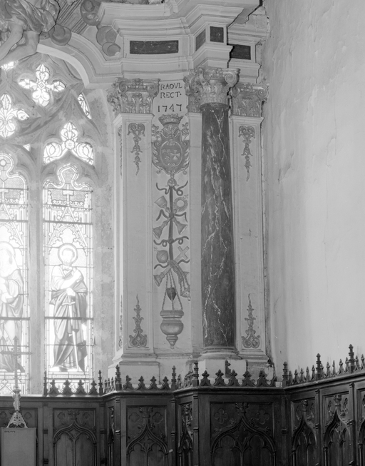 Retable exécuté en 1747 pour le recteur de la paroisse Mr Raoul (inscription).