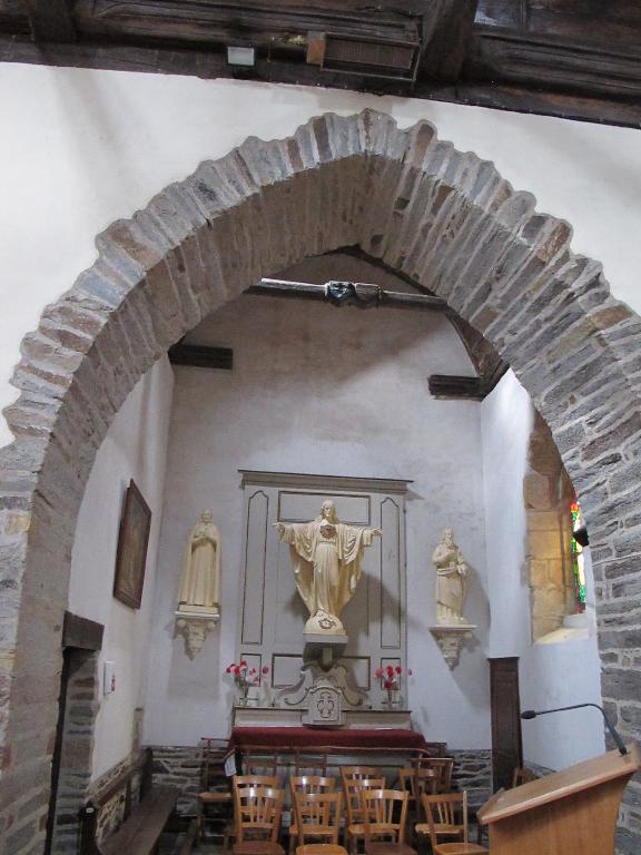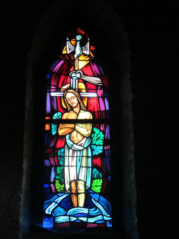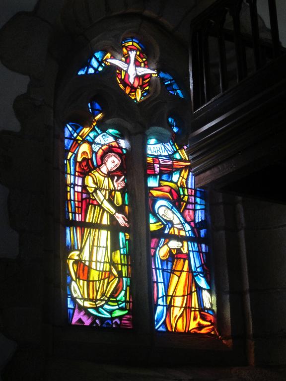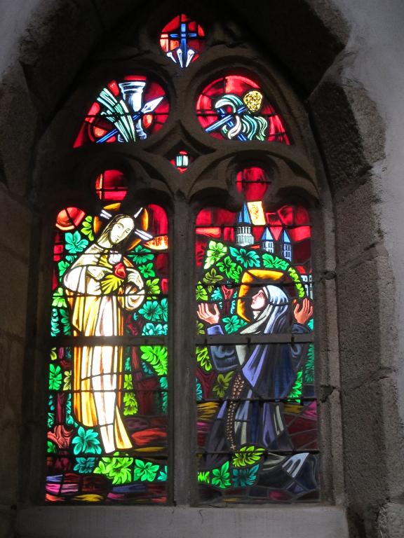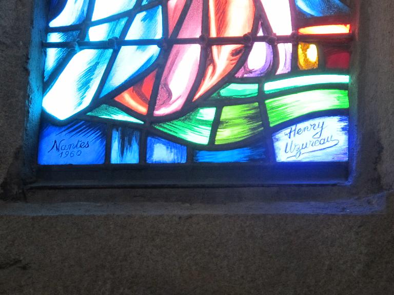 Dans les années 1960, on fait appel au verrier nantais Henry Uzureau qui illustre différentes scènes de la Vie de la Vierge : sa naissance (chapelle nord), son couronnement et l’Annonciation (nef, mur sud). Dans la chapelle sud, l’apparition du Sacré-Cœur à Marguerite-Marie Alacoque occupe la baie ouverte dans le mur ouest, une iconographie en relation avec la statue posée au-dessus du tabernacle qui est le seul vestige d’un ensemble du milieu du 18e siècle. Dans la chapelle des fonts, la verrière figure le Baptême du Christ.