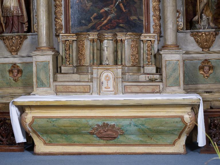 Ensemble du maître-autel : autel, tabernacle, retable, 2 gradins d'autel, église Saint-Martin (Saint-Martin-sur-Oust),