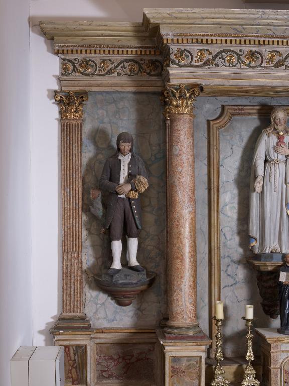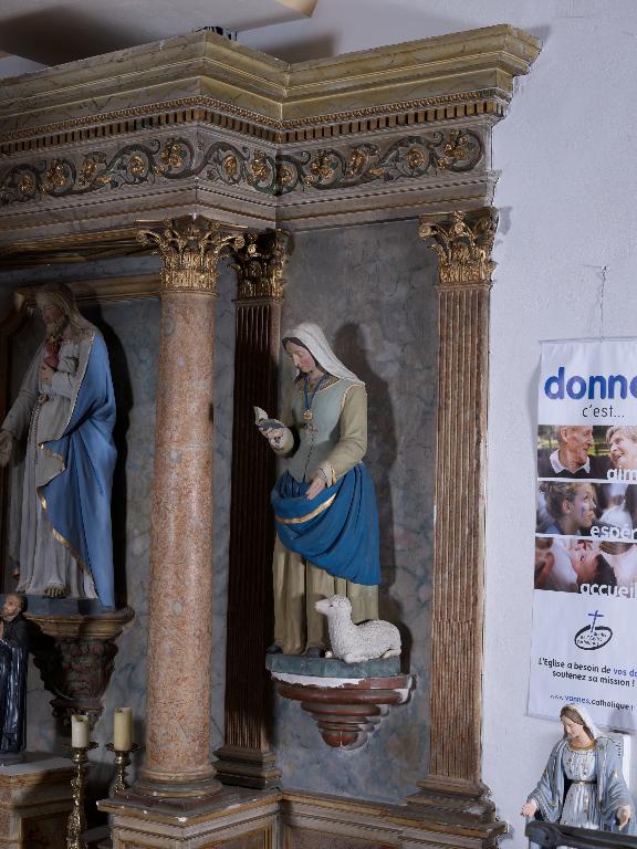 Ensemble de l'autel du Sacré-Coeur : autel, retable, 3 statues : Sacré-Coeur, Saint Isidore, Sainte Germaine de Pibrac, église Saint-Martin (Saint-Martin-sur-Oust),