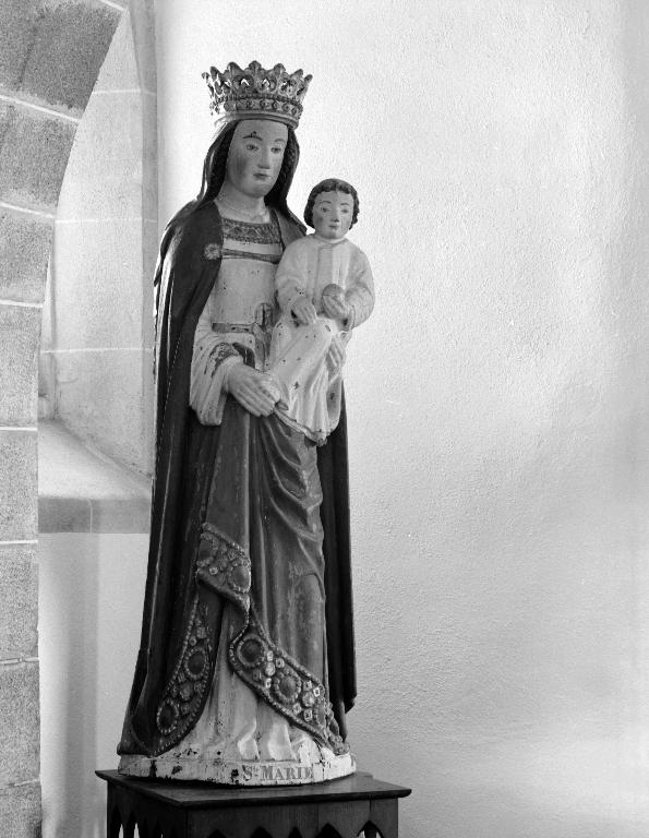 La statue de la Vierge à l’Enfant, sculptée dans le bois, peinte et dorée, est une œuvre artisanale de bonne facture s'inspirant de modèles savants. Elle est peut-être le modèle de celle de la chapelle Notre-Dame de toutes aides à Sérent, qui, comme elle, tient tendrement le pied de l’Enfant.