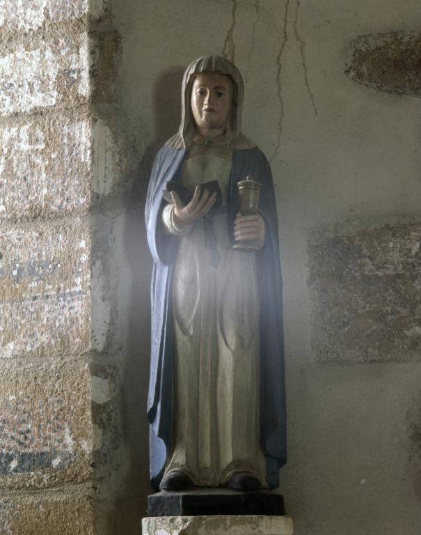Cette statue ne dévoile pas son identité aussitôt qu’on la voit. En l’absence de tout autre indice, seul le flacon de nard, l’un des plus anciens parfums orientaux, suggère que nous sommes en présence d’une sainte femme. Modestement vêtue, son habit et son voile qui la couvrent entièrement l’éloignent de Marie-Madeleine à qui le pot d’onguent fait penser dans un premier temps.