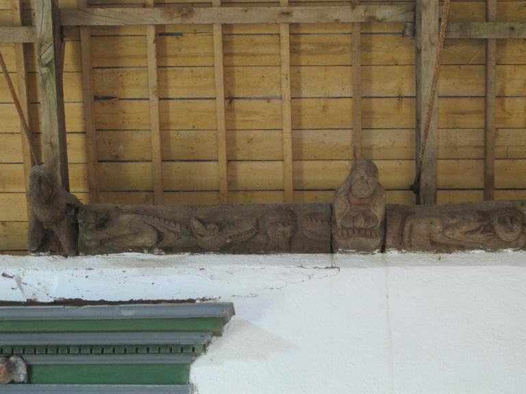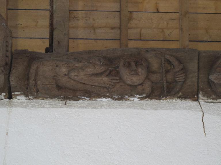 Ensemble blochets et sablières du milieu du 16e siècle à rapprocher, par les motifs représentés, des sablières de l'église du Croisty datant de 1553.