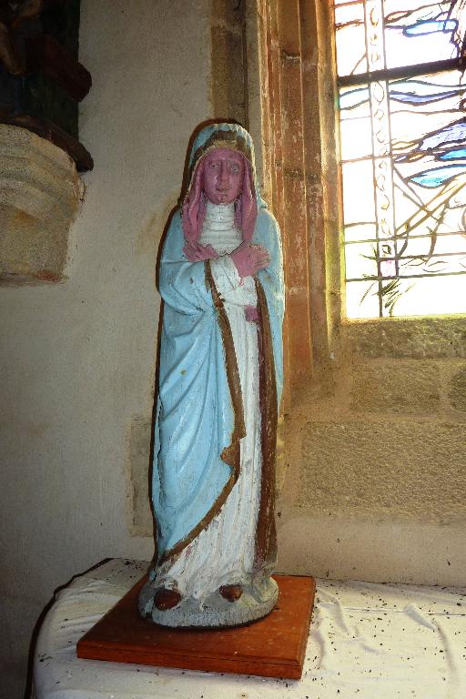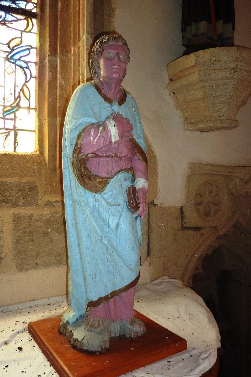 Une polychromie récente redoutable masque en partie l'intérêt de ces deux statues du 17e siècle provenant d'une poutre de gloire disparue.