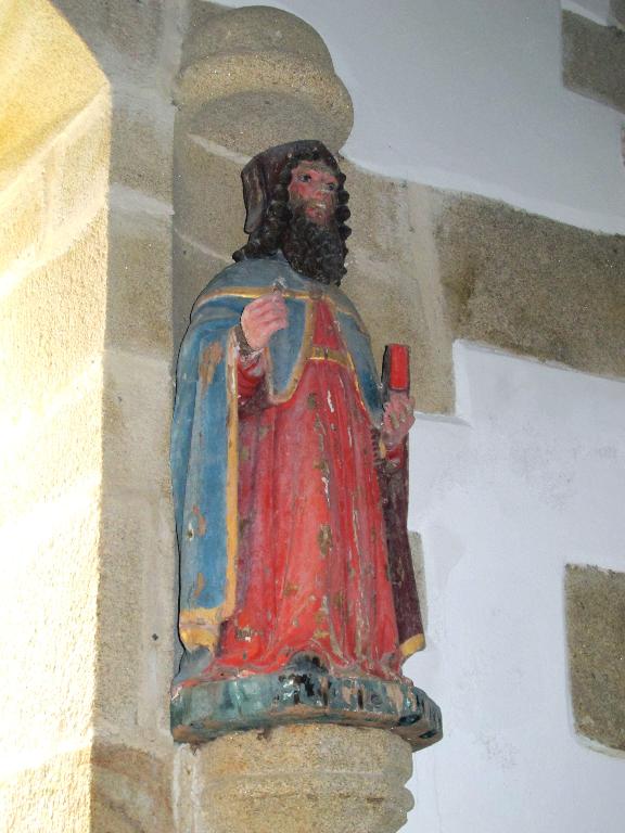 Sujet : saint non identifié : saint Herbot (?), à la barbe très abondante, au bonnet à oreillettes très longues.