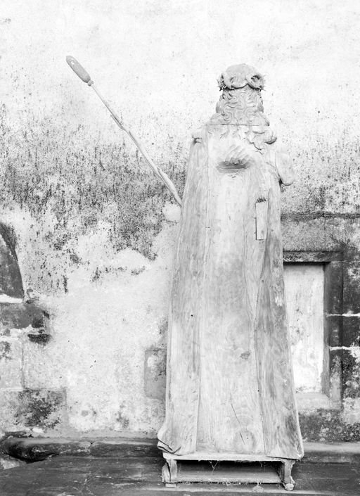 Ses poignets sont ligotés par une corde. Il tient un long roseau dans sa main droite.