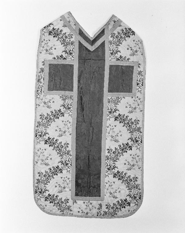Ornement dont le tissu du fond date du milieu du 18e siècle, celui du décor du milieu du 19e siècle.