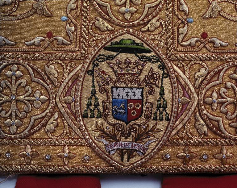 Armoiries de Mgr Latieule tissées ; devise : FRATRUM AMATOR.