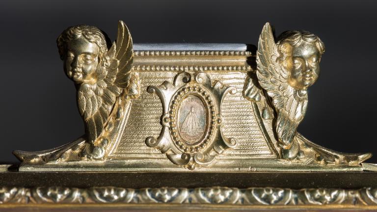 L'iconographie du reliquaire - des lys et des ronces entremêlés - se rattache à la découverte légendaire, au IXe siècle, dans un buisson de ronces toujours fleuri, de la statue miraculeuse à l'origine du sanctuaire.