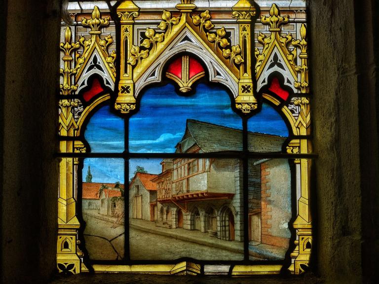 Verrière exécutée en 1893 par Burckhardt et fils, maîtres verriers à Munich (Allemagne) ; la maison de Josselin qui y figure a été détruite.