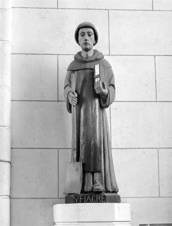Statue : saint Fiacre, église paroissiale Notre-Dame (La Chapelle-Caro fusionnée en Val d'Oust en 2016),
