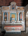 Inscription peinte, sur le retable : N.D. DES FLEURS.