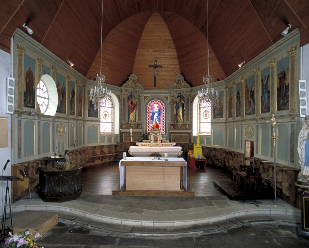 Le décor de choeur est composé d'un lambris de revêtement orné de douze panneaux peints. Il s'accompagne d'un ensemble de 30 stalles.