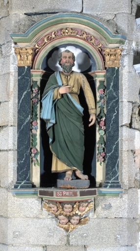 Inscriptions peintes sur les consoles des statues : St PIERRE ; St PAUL.