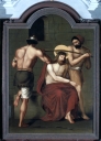 L'édicule placé au sommet du retable présente une sainte face sur le voile de sainte Véronique en demi-relief, cette représentation est encadrée de deux pilastres à chapiteaux ioniques puis de pots à fleurs. L'ensemble du retable est sommé d'une croix.
