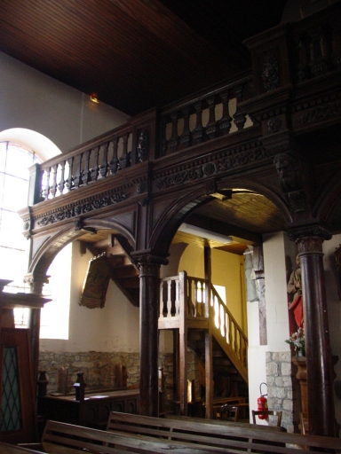 Tribune construite en 1888 comme palliatif aux agrandissements non réalisés de l'église. Commandée aux ateliers de Le Brun, menuisier sculpteur à Lorient (Danigo, 1986).