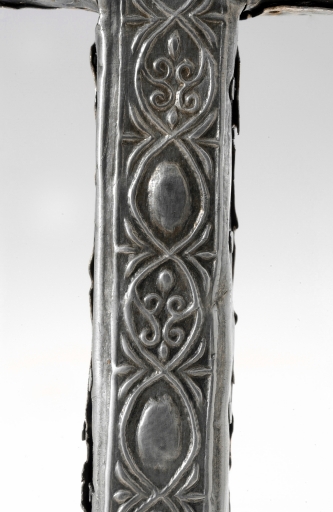 La croix contenue est ornée sur ses deux faces d'un décor estampé faisant alterner des oves et des rinceaux stylisés à l'extrême qui se rattache à une tradition ornementale ancienne telle qu'on la voit par exemple mise en oeuvre sur le bras et la châsse-reliquaire de Saint-Gildas-de-Rhuis au XIVe siècle. La croix-reliquaire de Saint-Gondran (Ille-et-Vilaine), connue par des documents de la fin du XIXe siècle, présentait au revers une ornementation semblable.