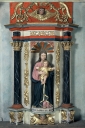 La carte postale ancienne montre que le retable sud a perdu la statue de sa niche latérale droite.