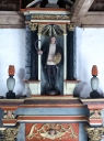 Les niches du retable sont ornées de chutes de fleurs, de têtes d'ange, de cuir découpé, de chapiteaux corinthiens. Les colonnes torses sont ornées de pampres. Deux pots à feu surmontent l'entablement. Autel orné de bouquets de fleurs peints encadrés par des motifs de dentelle. Sur la porte du placard du retable sud, sont figurés des cariatides engainées et un agneau mystique.