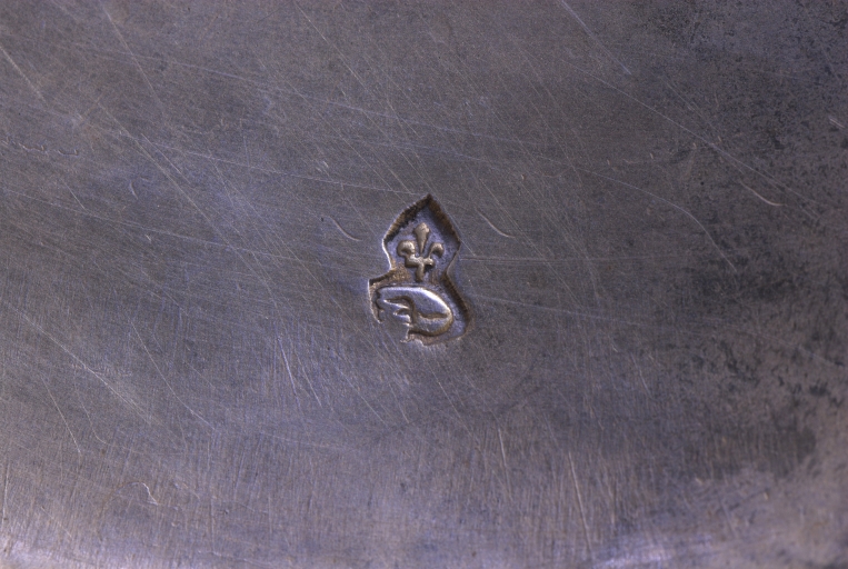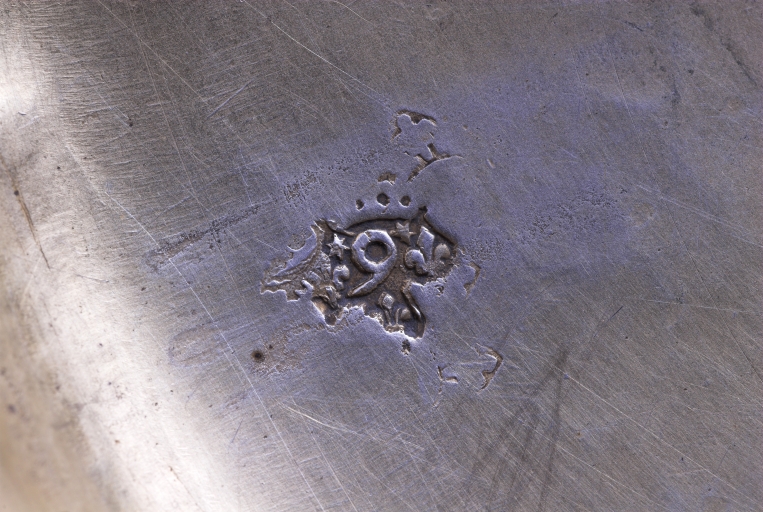 Quatre poinçons sont insculpés sous le pied du calice. Poinçon d'orfèvre : initiales I et G séparées par deux tiges florales, une hermine entre les deux, le tout surmonté d'une couronne (Jean Grégoire). Lettre-dare Q et R inversé accolés, poinçon de communauté de Rennes vers 1672-1676. Poinçon de charge : 9 couronné. 4e poinçon non identifié (poinçon de décharge) : main fermée surmontée d'une fleur de lys. Trois traces de poinçons sont perceptibles sous la patène, dont un couronné.