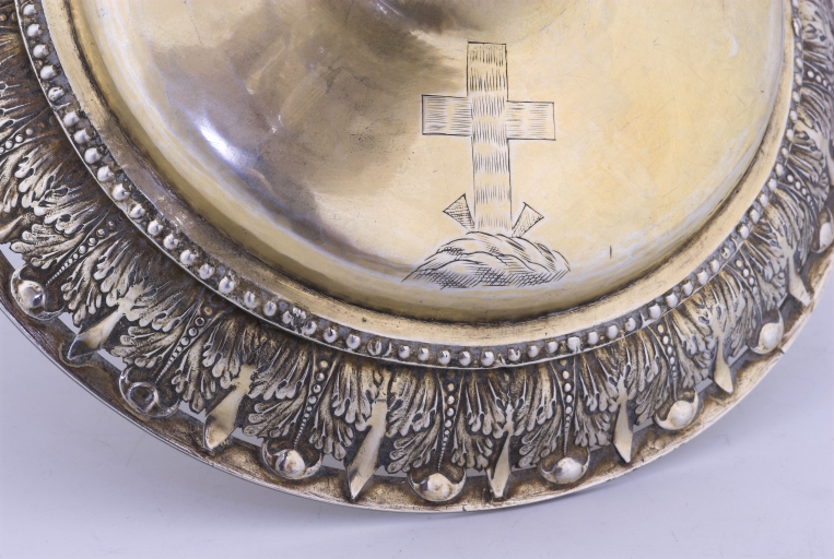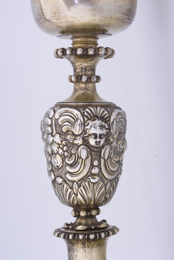 Calice dû à l'orfèvre rennais Jean Grégoire, actif entre 1671 et 1716. Le calice est fabriqué vers 1673-1676.