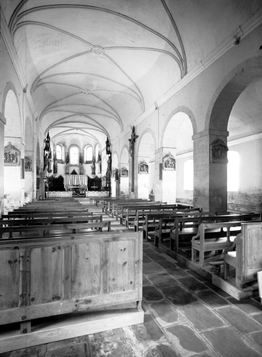 Sur un total de 59 objets ou ensembles d'objets repérés, 24 ont été sélectionnés pour étude et traités en dossiers individuels alors que 35, d'un intérêt patrimonial moindre, ont été repérés (voir liste en annexe). Seules deux statues, une sainte Catherine et un saint Amphibal sont contemporains de la reconstruction de l'église, en 1777. La croix-reliquaire réalisée par l'orfèvre vannetais, Joseph Pierre-Marie Tiret, datée de la période révolutionnaire, est la plus ancienne pièce d'orfèvrerie conservée. Une grande partie du mobilier date du réaménagement du choeur dans la 2e moitié du 19e siècle : l'ensemble du mobilier néogothique (lambis de demi-revêtement, stalles, autels latéraux et dais des statues, détruits après 1969) et les statues en plâtre polychrome pour la plupart attribuées au sculpteur Carado. L'importance de la paroisse au 19e siècle paraît à travers les nombreuses pièces d'orfèvrerie issues d'ateliers parisiens (Basnier, Dejean, Demarquet, Favier, Masson, Poussielgue-Rusand, Renaud). Les vitraux du choeur, financés par la famille Le Lidec, ont été confiés au peintr-verrier toulousain, Gesta, dans le dernier quart du 19e siècle.