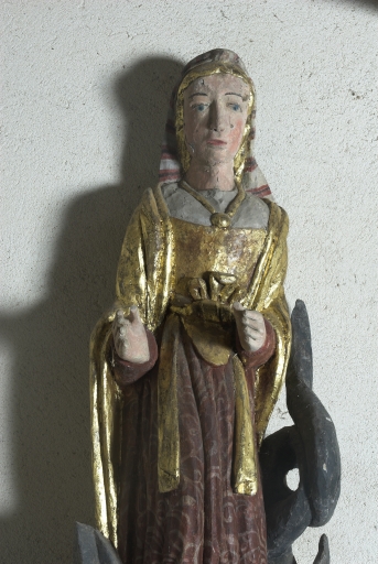 - bois, en plusieurs éléments taillé, peint, polychrome, doré