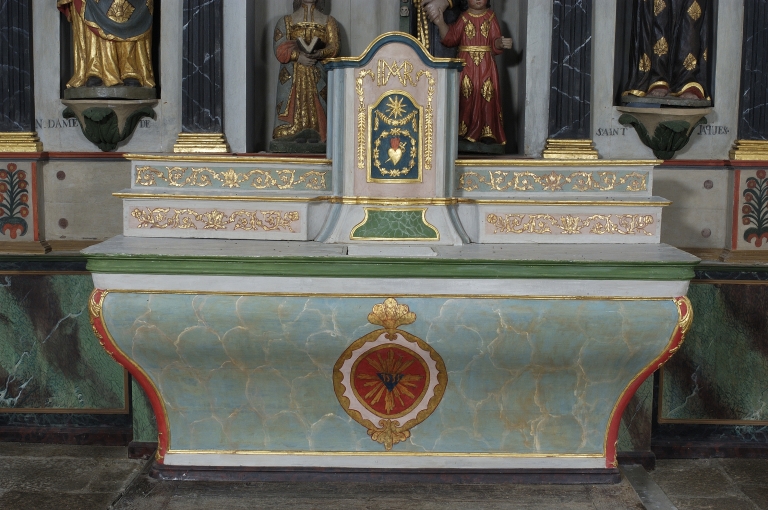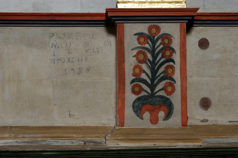 Retable du 18e siècle autrefois orné d'un lambris peint décoré de têtes d'angelots dans la partie supérieure. La date de 1788 correspond probablement à des travaux de restauration de peinture.
