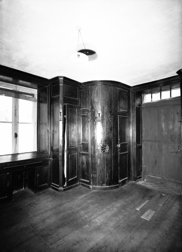 Ensemble composé d'un lambris de revêtement, d'un chasublier, de deux armoires d'angles et de plusieurs meubles de sacrisitie.