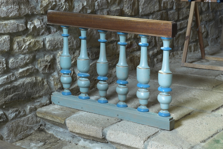 - clôture de choeur, bois polychrome, fin 18e siècle (la clôture a été coupée ne laissant que deux éléments d'environ un mètre ; les balustres anciennes otées sont reléguées dans l'armoire de fabrique)