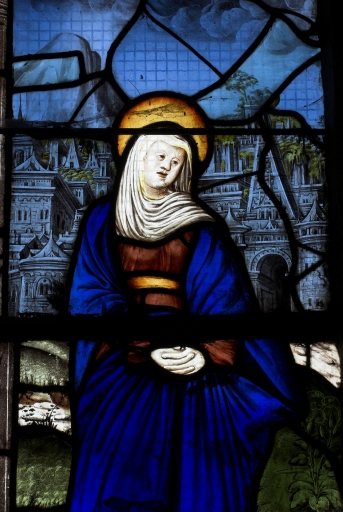 - verre, jaune d'argent, gravé, grisaille sur verre, sanguine sur verre