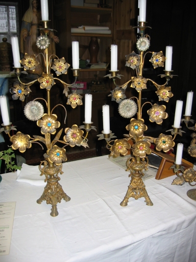 L'église de Ploemel a été reconstruite entre 1832 et 1845, mais a conservé une partie du mobilier et des objets du culte de l'ancien édifice. Sur un total de 57 objets ou ensemble d'objets et mobiliers recensés, 25 ont été sélectionnés pour étude et traités en dossier individuel. Parmi les éléments les plus importants de l'église antérieure, le retable du bras nord, qui porte la date de 1777, montre un des derniers exemples d'une tradition locale de retables d'inspiration lavalloise ou angevine, mais réalisés par des artisans morbihannais, dont d'autres exemples sont conservés alentour : Carnac, Locmariaquer, ainsi que celui de l'église d'Erdeven, plus ancien, mais disparu depuis les années 60. Le tableau du martyre de saint Sébastien est contemporain du retable. Ce retable était contemporain de l'autel du Rosaire, daté 1769, adossé à la longère nord, disparu lors de la reconstruction de l'église. De la même époque, le retable du choeur a perdu son autel ainsi que son tableau d'origine, remplacé au milieu du 19e siècle par un tableau du peintre morbihannais Pobéguin. Les statues de saint André et saint Isidore qui accompagnent le retable en sont contemporaines et semblent être l'oeuvre du sculpteur Le Brun de Lorient en 1880. La statue la plus ancienne contenue dans l'édifice est celle de saint Goal datée 1576, une des plus anciennes statues datées de Bretagne. Elle provient de la chapelle détruite de Saint-Goal à Kergal. Outre un buste reliquaire du 17e siècle et une série incomplète de stalles du 18e siècle, un chandelier pascal du 17e ou 18e siècle, plus rare, complète les objets antérieurs à la Révolution La reconstruction de l'église au milieu du 19e siècle est l'occasion d'un renouvellement important du mobilier et de l'orfèvrerie : de nouvelles stalles prennent place dans le choeur, oeuvre comme les boiseries du choeur du sculpteur lorientais Le Brun ; une tribune au fond de l'église supporte l'orgue. A l'exception d'un buste de saint Cornély, peut-être aussi de Le Brun, la statuaire d'alors ne présente pas d'intérêt.