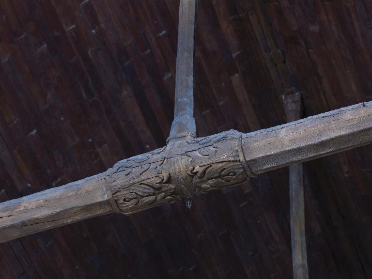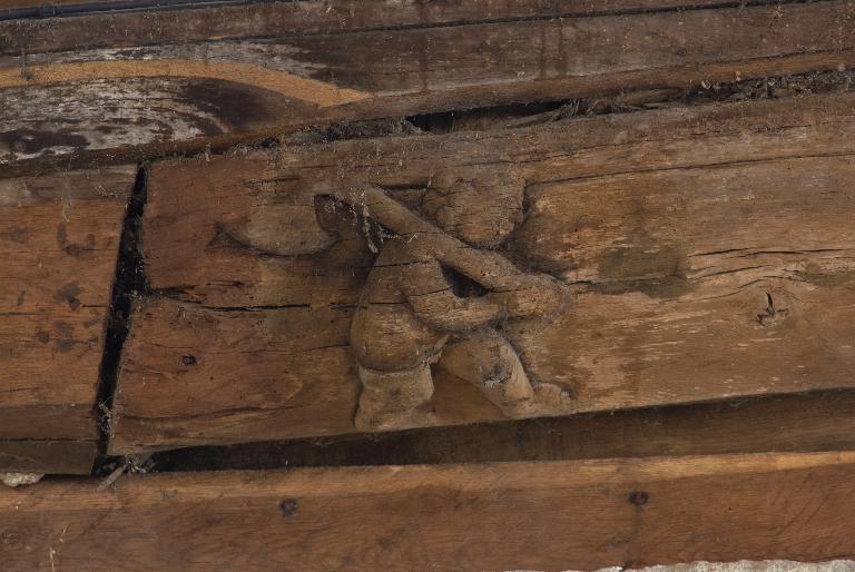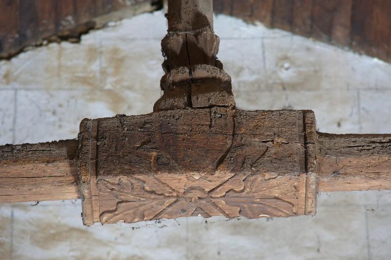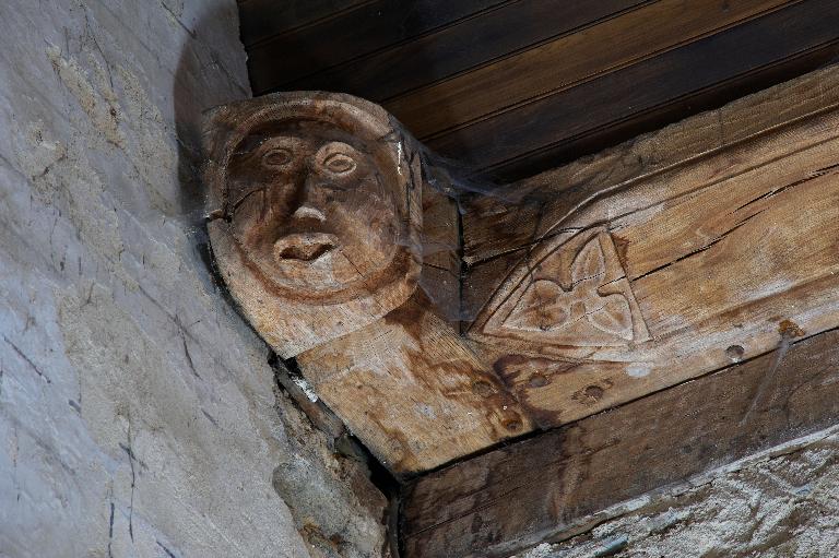 En travers du chœur ou de la nef, les entraits sont décorés en leur centre de feuillages ou de bagues moulurées. À leurs extrémités, ils semblent jaillir de la gueule de monstres appelés à juste titre engoulants.