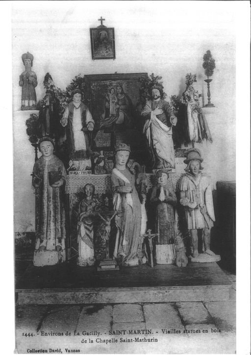 Environs de La Gacilly. – SAINT-MARTIN. – Vieilles statues en bois de la Chapelle Saint-Mathurin. Carte postale, Vannes : David, édit., limite 19e-20e siècles.