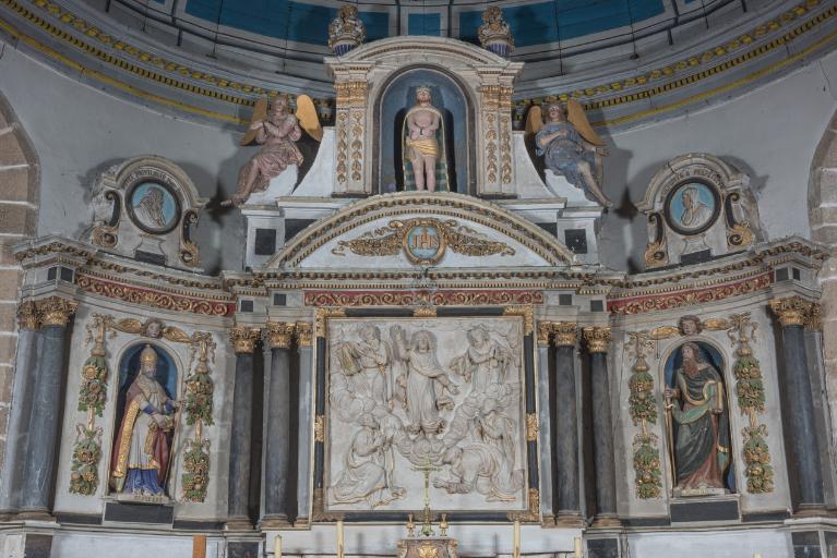 Le Christ est debout. Il revêt un perizonium doré noué à la taille et le manteau pourpre qui est ici doré et bleu. On devine ses côtes.