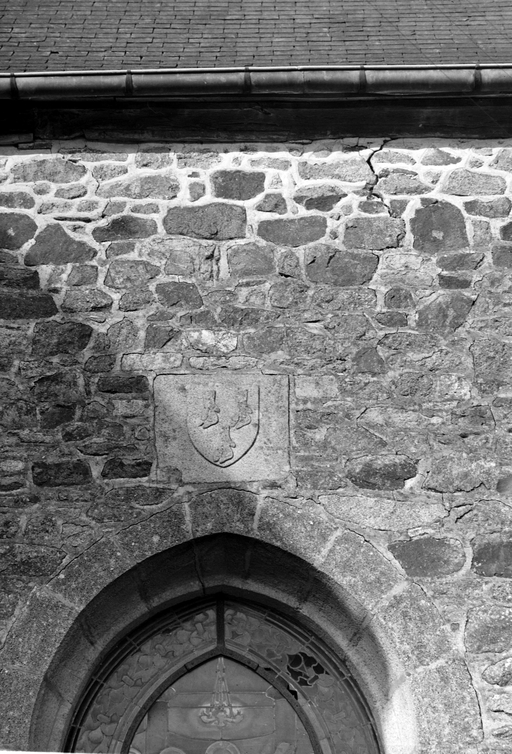 Façade sud : détail écu au dessus d'une fenêtre du choeurImmatriculation