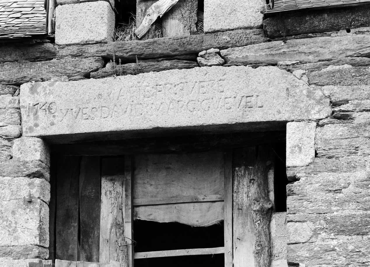 Le Moustoir - Maison : bâtiment D, façade sud, linteau de porteImmatriculation