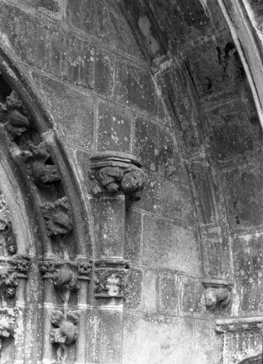 Châteauneuf-du-Faou, chapelle Notre-Dame-des-Portes : détail du pinacle sud du portail, état en 1966Immatriculation