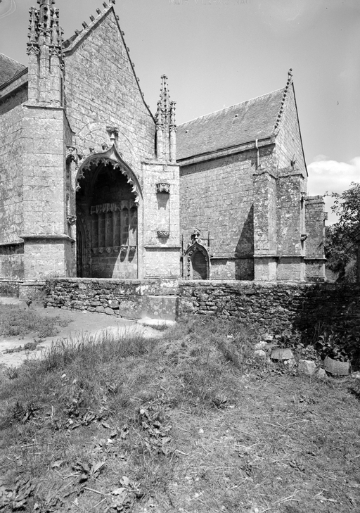 Façade sud, le porche et le croisillon pris du sud-ouest.Immatriculation
